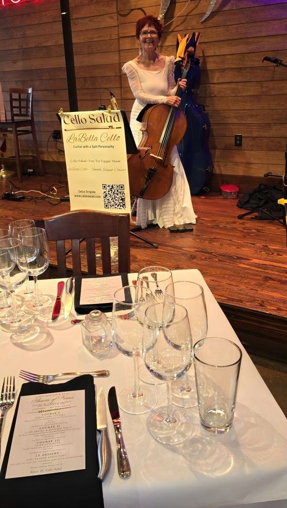 Cello Salad is fun, toe-tappin' music. Blues, Jazz, Latin, Country Western, Top 40s, Island Rock - a little bit of this and a little bit of that.